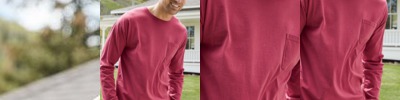 - Two-needle hemmed sleeves and bottom hem